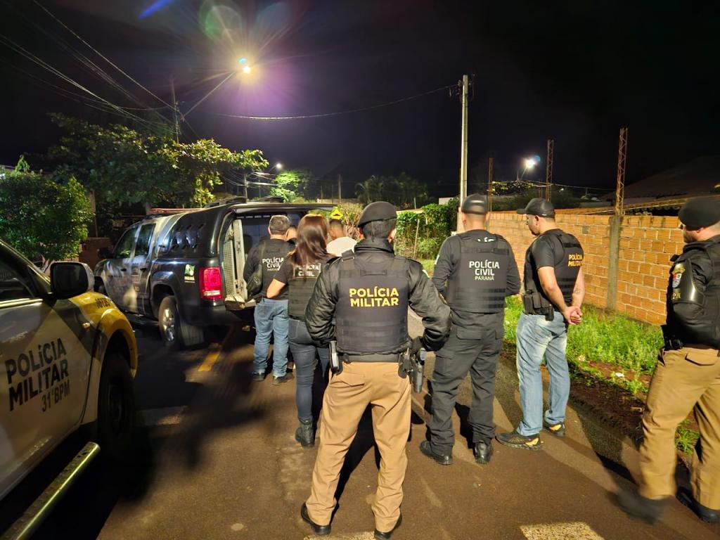 Em ação conjunta, equipes da Polícia Militar e da Polícia Civil cumprem mandado de busca e apreensão e mandado de prisão em Palotina, tendo como alvo um suspeito de um homicídio ocorrido no Estado de São Paulo, a operação iniciou as 5h00 da manhã de hoje no bairo Santa Terezinha.