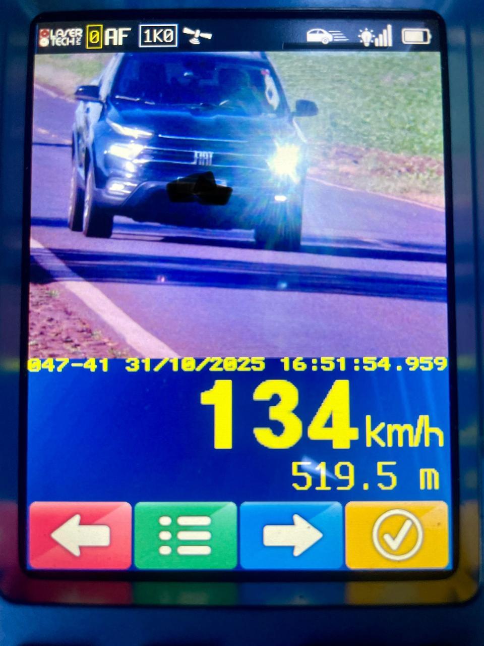 Durante a ação, foram registradas 72 imagens de veículos trafegando acima da velocidade permitida, que é de 80 km/h no trecho. A maior velocidade flagrada foi de 134 km/h, representando um risco elevado para a segurança viária.
