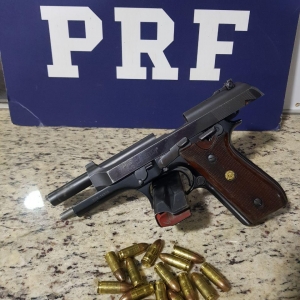 Por volta das 21 horas, em Céu Azul (PR), na BR-277, policiais abordaram uma condutora de um BMW 328i, com dois passageiros. Durante vistoria, foi encontrada, na cintura de um dos passageiros, uma pistola Taurus calibre 9 mm, carregada com 15 munições. Segundo o homem, ele adquiriu em Foz do Iguaçu (PR) e usaria para segurança pessoal. Diante dos fatos, os três, dois homens e uma mulher, foram conduzidos para a Polícia Civil em Matelândia (PR), para o registro do crime de porte ilegal de arma de fogo.