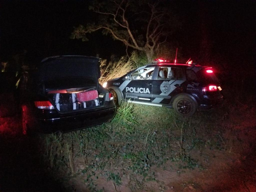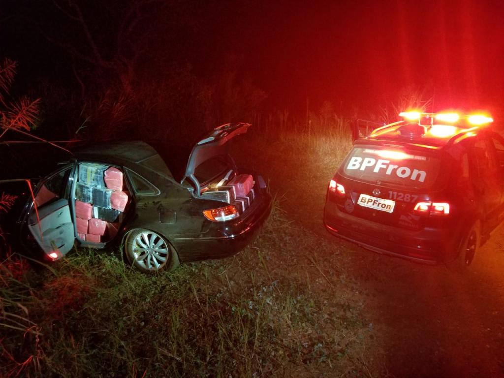 Retornando ao local de origem da ocorrência foi possível observar outro veículo fazendo a volta e saindo em alta velocidade, momento em que policiais Militares do BPFRON iniciaram acompanhamento tático, que logo em sequência o motorista tomou rumo ignorado, entretanto seguindo pela estrada. Após algum tempo de buscas, o referido veículo foi localizado em uma estrada de acesso a um porto clandestino.