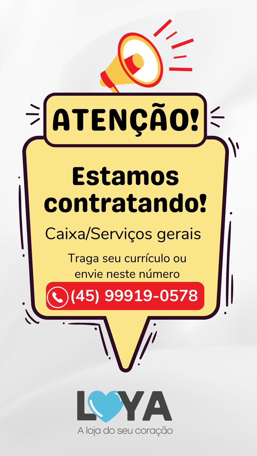 Ficou interessado(a)? Leve já o seu currículo até a loja ou envie pelo WhatsApp (45) 9 9919-0578.