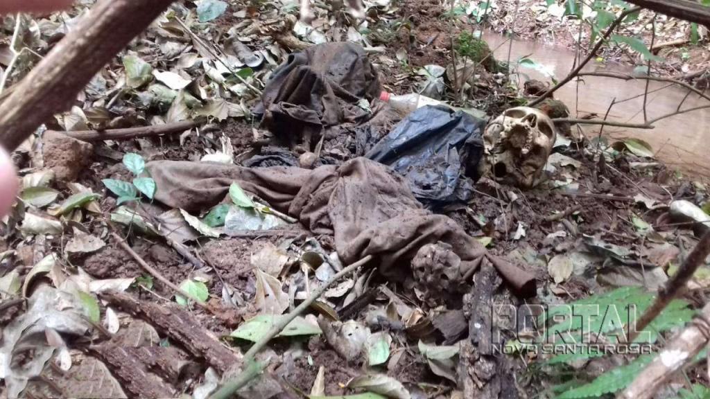 Foi localizado bem ao lado do córrego uma ossada humana, com partes de esqueleto humano, crânio em separado, e outras partes de ossos, envoltas em peças de roupas, camiseta, calça e saco plástico de cor preta, com um chinelo de dedo.