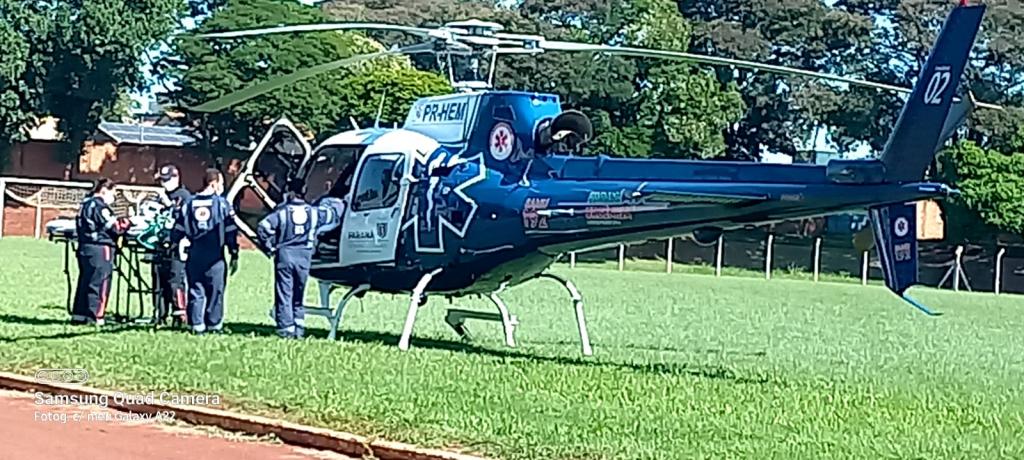 O pouso foi realizado no início da tarde de hoje (13) no Estádio Municipal e uma ambulância do SAMU encaminhou o paciente para a UTI.