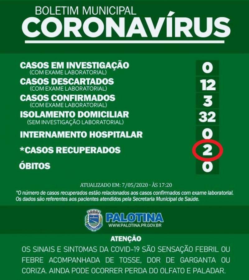 A Secretaria Municipal de Saúde de Palotina divulgou boletim informativo no final desta quinta-feira (07), sobre os casos de pessoas infectadas pelo COVID-19, no município.