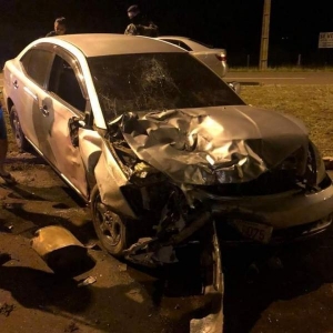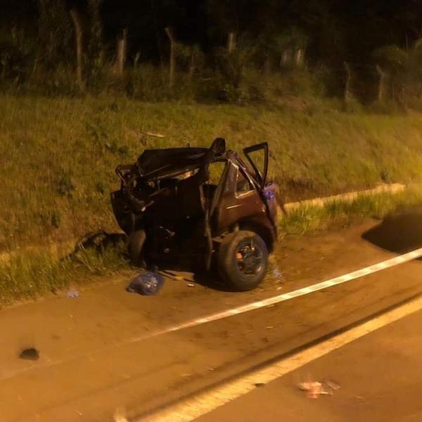 Com a batida, o Uno ficou destruído e foi arrastado por 50 metros, quando caiu em uma valeta.