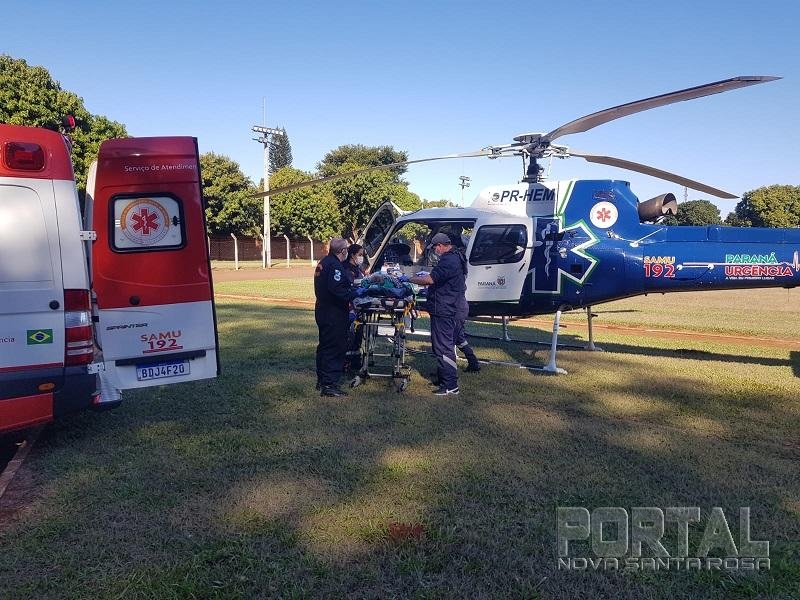 A ambulância do SAMU de Palotina foi quem realizou o translado da paciente do Hospital Municipal até o Estádio Municipal, local de pouso do helicóptero.