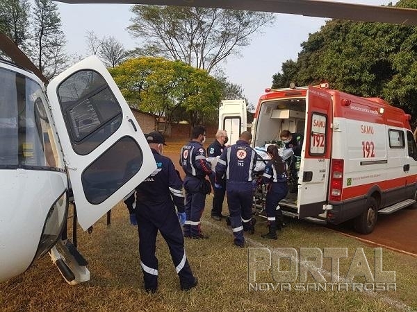 A ambulância do SAMU de Palotina foi quem realizou o translado da paciente do Hospital Municipal até o Estádio Municipal, local de pouso do helicóptero.