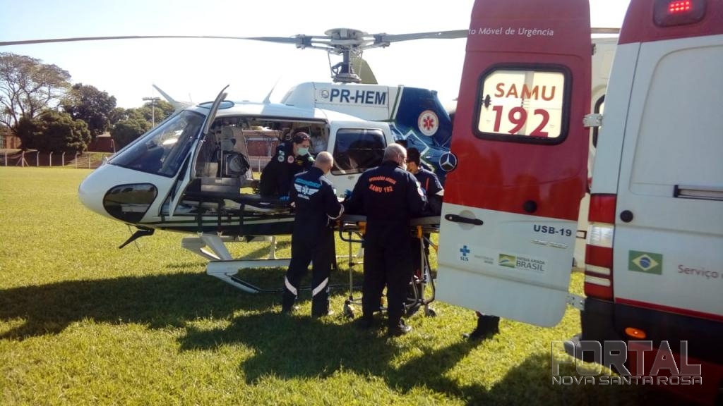 A ambulância do SAMU de Palotina foi quem realizou o translado do paciente do Hospital Municipal até o Estádio Municipal, local de pouso do helicóptero.
