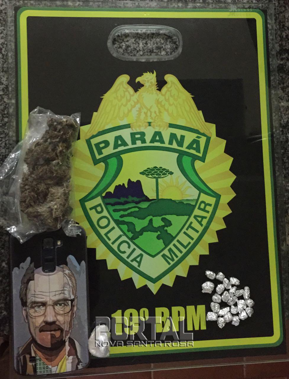 Diante ao flagrante foi deslocado até a residência do mesmo, onde seu pai autorizou a entrada da equipe. Em buscas no quarto do mesmo foram encontradas mais uma porção de maconha e 23 pedras de cracks, o qual confessou vender a droga por 10 reais a unidade.