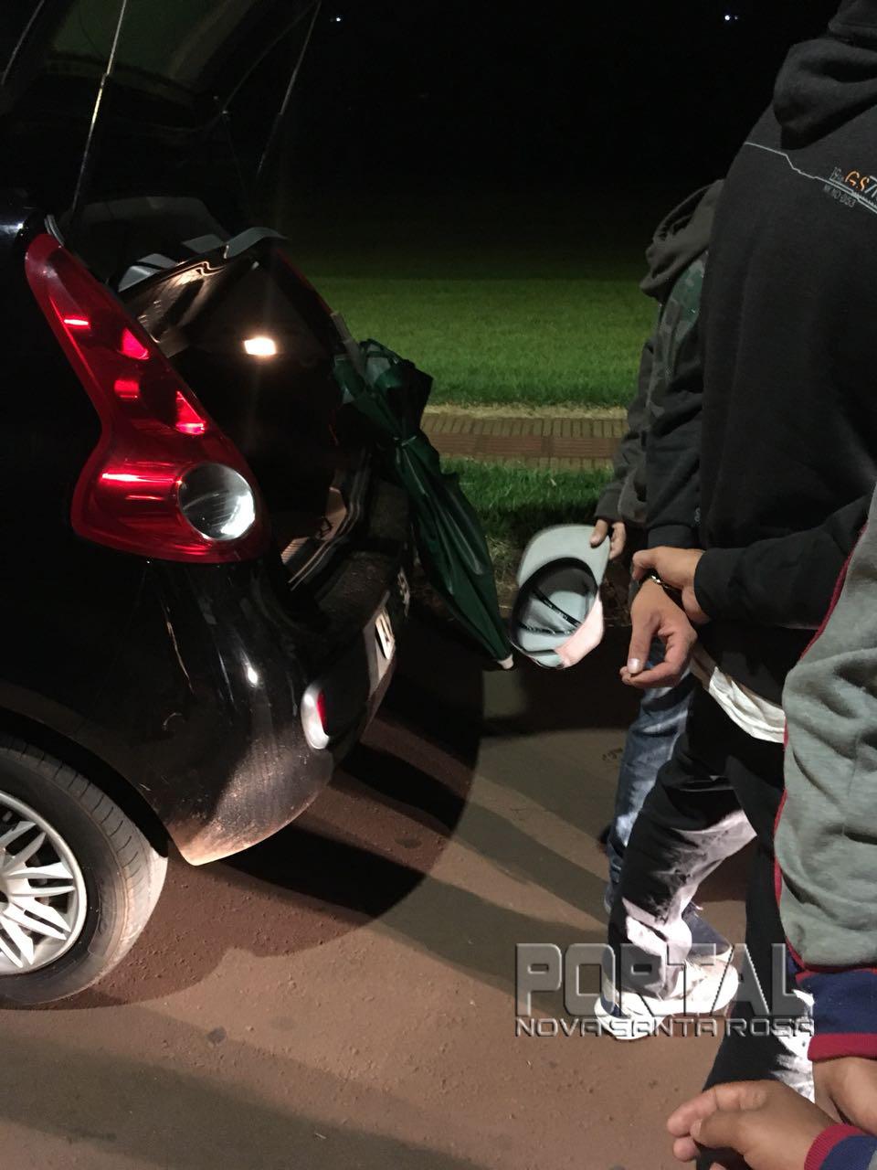 Durante buscas a equipe visualizou os veículos, dois Fiat/Palio de cores "preta e prata", que o de cor "preta", placas AVP-0935 de Cascavel, ao notar a presença da viatura policial acelerou tentando fugir da abordagem, porém sem êxito.