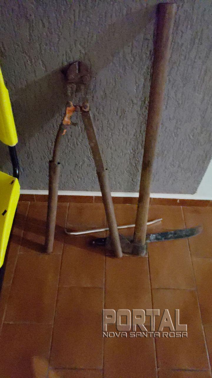 Em dialogo com os abordados a equipe verificou que todos os abordados, residiam na cidade de Cascavel, e todos possuíam passagens policiais por (roubo/furto/trafico/porte, entre outras) assim a equipe realizou busca no interior dos veículos, onde foram encontrados ferramentas para arrombamento/furto, alicate de corte de vergalhão, facão, pé de cabra, machado e 01 guarda sol de grande porte, costumeiramente utilizado para se esconder das câmeras de vigilâncias).