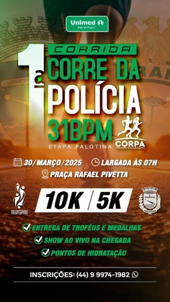 Não fique de fora dessa corrida histórica! Reúna seus amigos, calce seus tênis e venha participar do “Corre da Polícia”.