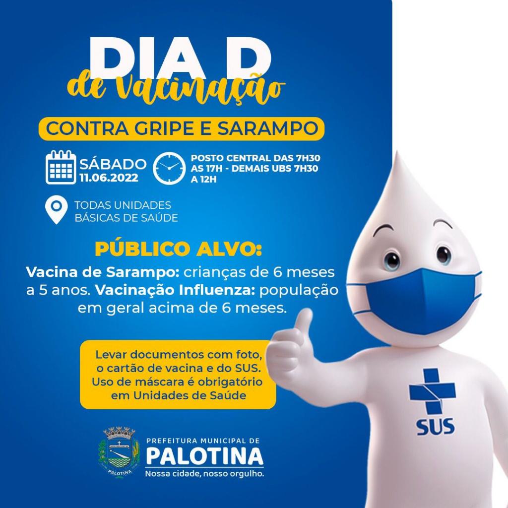 No próximo sábado dia 11 de junho a Secretaria Municipal de Saúde de Palotina vai realizar o Dia D da Vacinação.