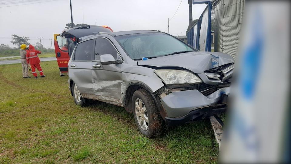 Quando chegaram no trevo de São João D'Oeste, um Chevrolet Corsa acessou a rodovia, jogando a SUV para a pista contrária.