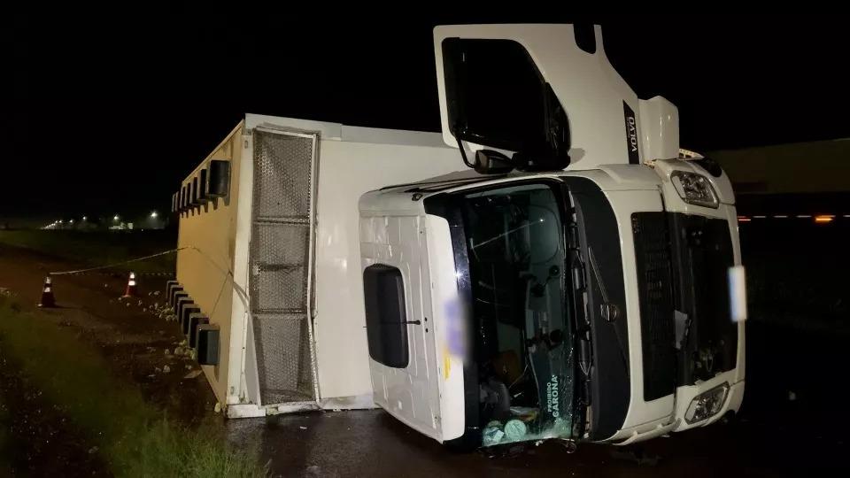 O acidente aconteceu por volta de 02h40, no quilômetro 596 da rodovia. O veículo seguia no sentido Foz do Iguaçu/Curitiba quando saiu da pista após o condutor perder o controle da direção. O caminhão seguiu por cerca de 50 metros até tombar na via marginal.