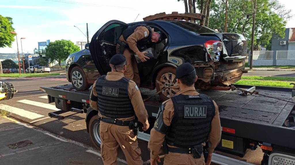 Dentro do carro, os policiais também encontraram um rádio comunicador. O veículo e a carga apreendidos foram encaminhados para a 20ª Subdivisão Policial (SDP) de Toledo (PR).