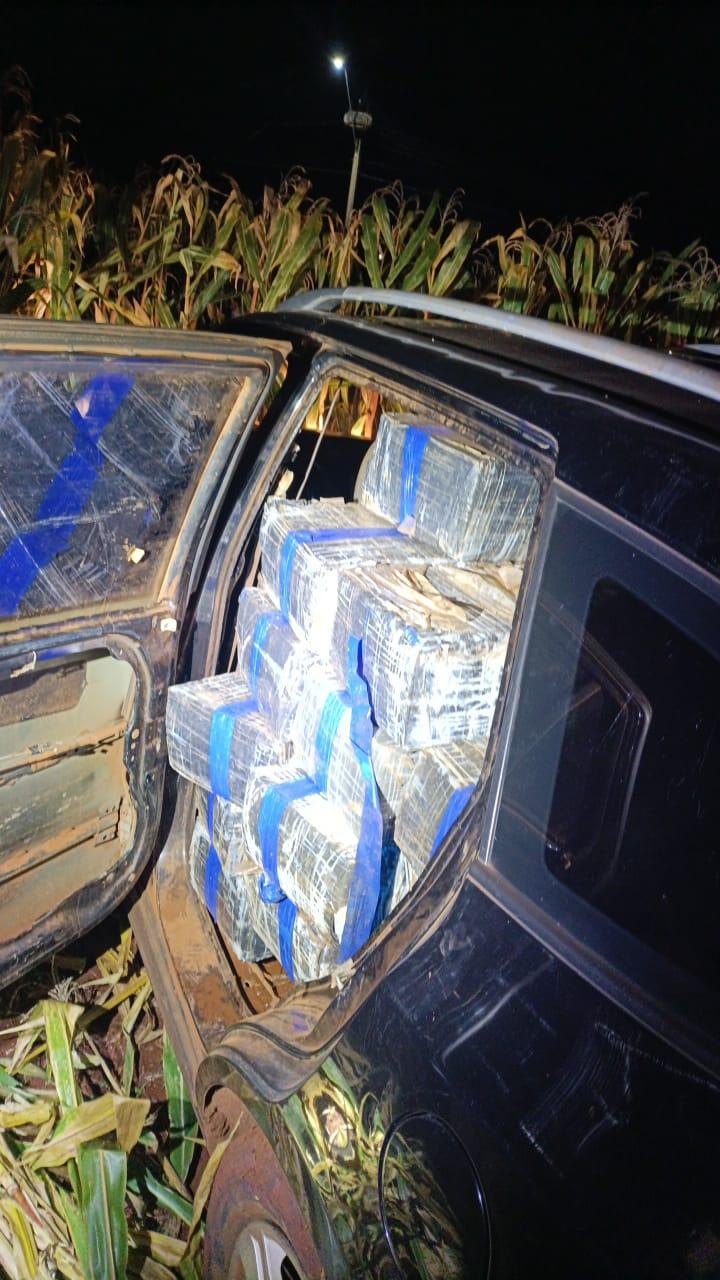 Diante da ameaça, um disparo foi efetuado na direção do pneu do veículo, que pouco depois foi abandonado em meio a uma plantação de milho. O condutor fugiu a pé e não foi localizado, mesmo após buscas na região. O segundo veículo suspeito também não foi encontrado.