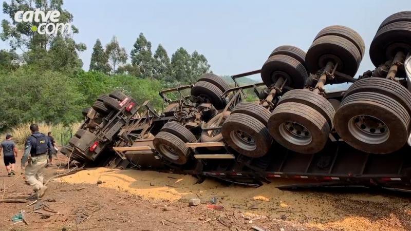 O veículo de carga carregou 39,8 toneladas de milho em Toledo e levaria até Concórdia, em Santa Catarina.