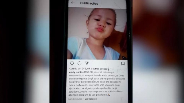 Uma conta criada nas redes sociais com o nome de emily_santos0156 pedindo ajuda para ajudar a mãe da Ágata Sofia é falsa.