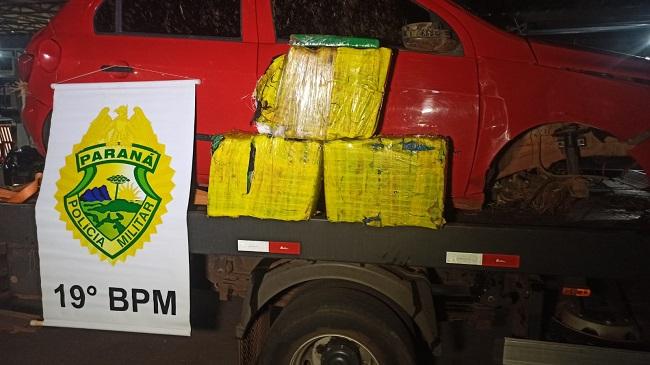 Após o fato, o motorista do Gol tentou fugir a pé, mas foi interceptado pela equipe policial após aproximadamente 400 metros. Durante a revista pessoal, nenhum item ilícito foi encontrado, mas no interior do carro foram localizados aproximadamente 101kg de maconha embalados em plástico.
