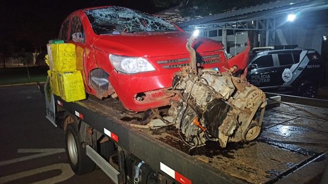 O Gol foi localizado na BR-163, sentido Toledo a Cascavel. Quando a voz de abordagem foi dada, o motorista desobedeceu e iniciou uma fuga em alta velocidade, realizando ultrapassagens perigosas, muitas delas pelo acostamento. A perseguição tática continuou até próximo à Sede Alvorada, onde o veículo bateu lateralmente com um Jeep Commander, perdendo o controle e capotando na canaleta central da rodovia.