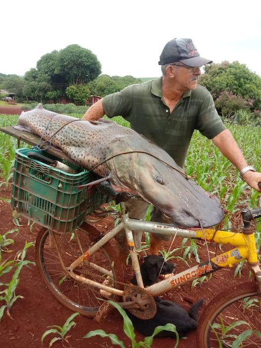 Poucos dias após o fim da piracema e a liberação da pesca, o pescador conhecido como “Turcão” da localidade rural de Salamanca fisgou um peixe da espécie Pintado, com mais de 40kg.