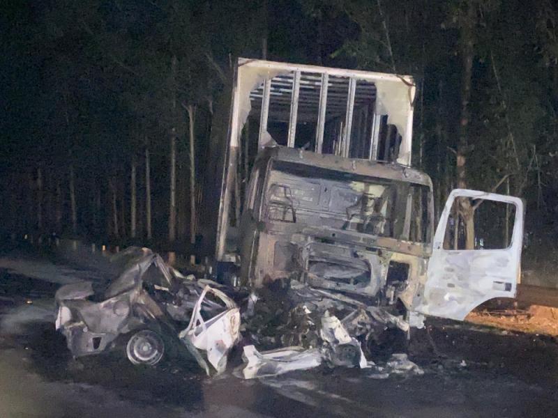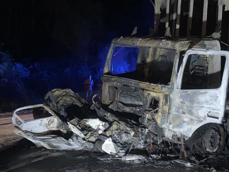 O condutor do caminhão sofreu ferimentos leves e foi encaminhado para atendimento médico. Já o condutor(a) do carro morreu carbonizada, com o corpo preso às ferragens.