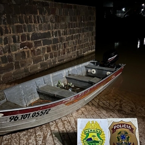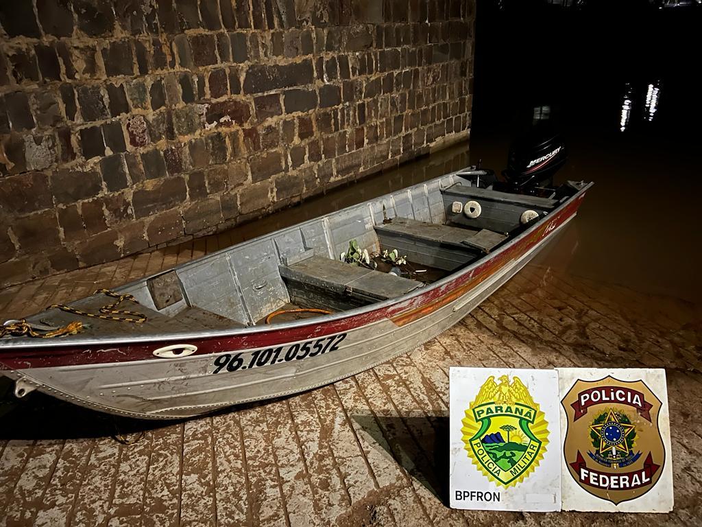 Durante as buscas no local, foi encontrada uma embarcação de alumínio de aproximadamente 6 metros, com um motor Mercury 40 HP e 15 fardos de substância análoga à maconha.