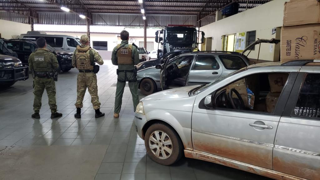 Os veículos estavam carregados com 4.000 pacotes de cigarros contrabandeados, além de mercadorias diversas de origem estrangeira.