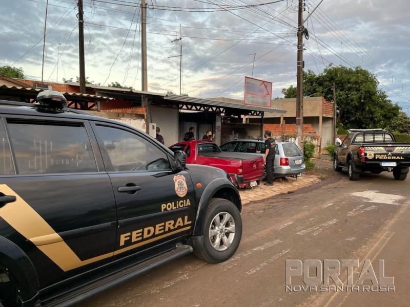 Na manhã de hoje, 40 policiais federais cumprem quatro mandados de busca e apreensão nos municípios paranaenses de Santa Teresinha do Itaipu (3) e em Terra Roxa (1), além de um mandado de prisão de um dos investigados que está foragido, após ser condenado por tráfico de drogas.
