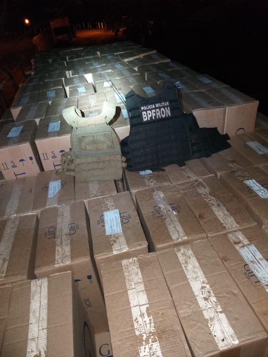Ao chegar nas proximidades, visualizaram uma embarcação de grande porte descarregando cigarros em um porto clandestino para um caminhão boiadeiro estacionado de ré. Na tentativa de abordagem policial, os contrabandistas empreenderem fuga em meio a mata fechada e a embarcação conseguiu fugir ao Paraguai.