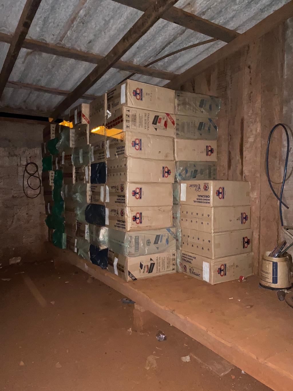 No local foram encontradas aproximadamente 100 (cem) caixas de cigarros contrabandeados armazenadas em um galpão, causando um prejuízo estimado de R$ 250.000,00 ao crime organizado da região.