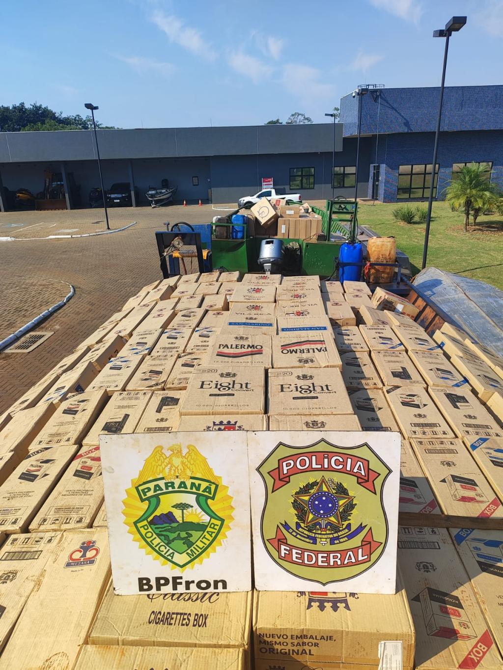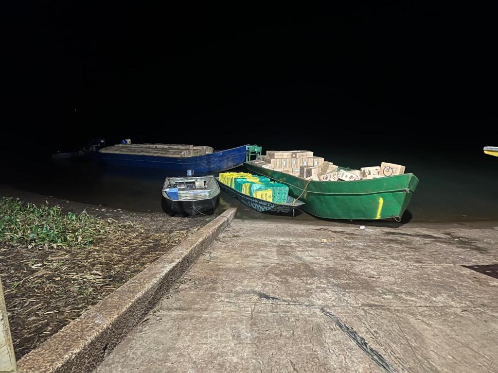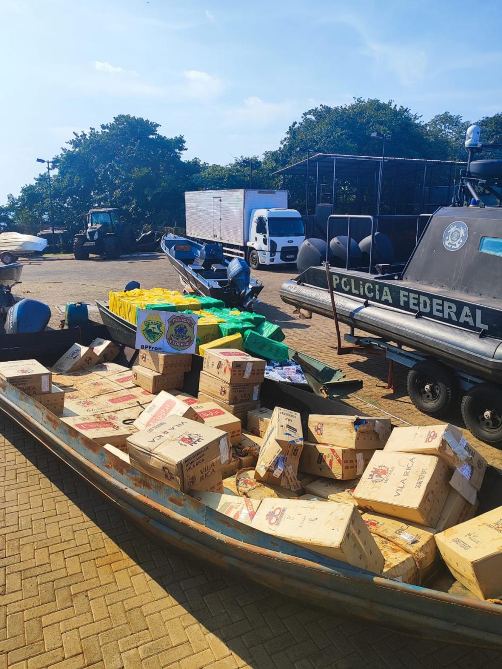 No local foram apreendidos 01 veículo, 06 embarcações, incluindo 03 de grande porte (barcaças), carregadas com aproximadamente 1.200 caixas de cigarros contrabandeados do Paraguai, resultando num prejuízo aproximado de R$ 4.000.000,00 (quatro milhões de reais) ao crime organizado regional.
