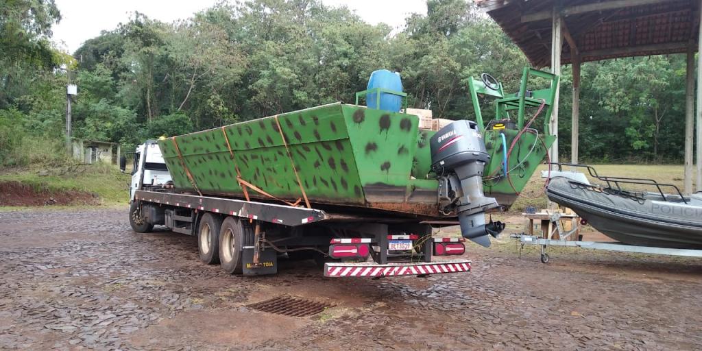 Nesta sexta-feira (18), durante diligência no lago de itaipu equipe integrada por policiais federais e policiais militares do BPFRON percebeu movimentação suspeita em porto clandestino da região e resolveu acompanhar a movimentação daquele local.