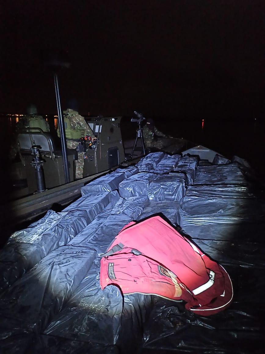 Nesta sexta-feira durante plantão da PF e do Exército Brasileiro ao longo dos trabalhos de patrulhamento ostensivo do bloqueio fluvial para travessia de ilícitos subindo o Rio Paraná em Guaíra, equipe integrada percebeu uma movimentação suspeita de 01 embarcação navegando lentamente em direção a porto clandestino da região e comunicou com as demais equipes de serviço que fechavam outros flancos do rio para obtenção de reforço e certificar que se tratavam de embarcações clandestinas para aproximação.