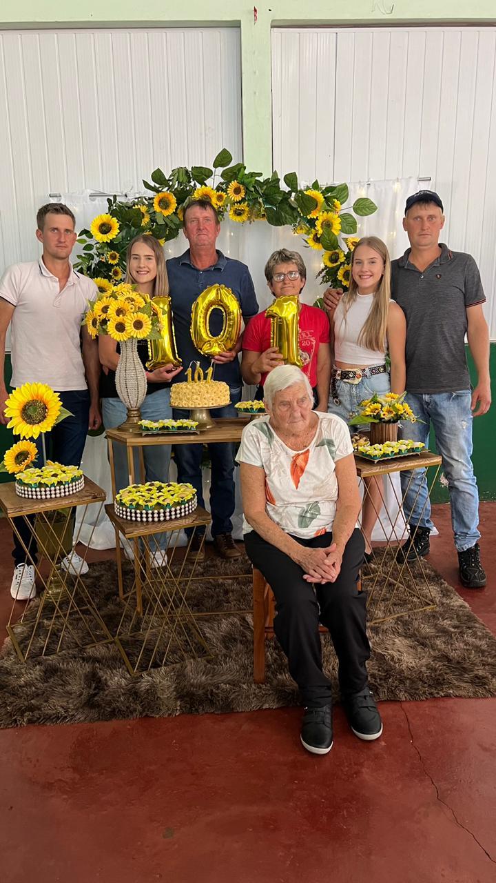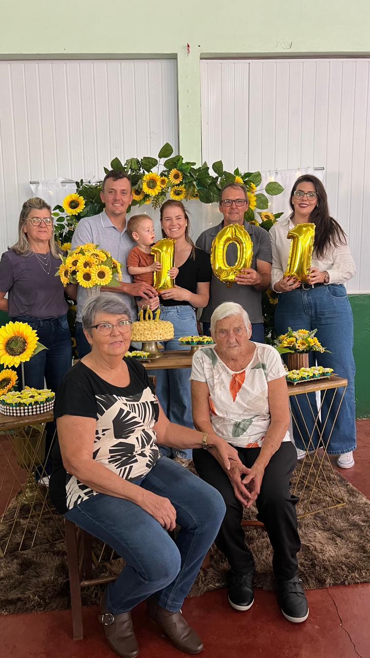 Este ano Dona Ema completou 101 anos no sábado (01) mas a comemoração aconteceu no domingo (02). Parabéns a Pioneira de Nova Santa Rosa e um grande abraço de toda a equipe do Portal.