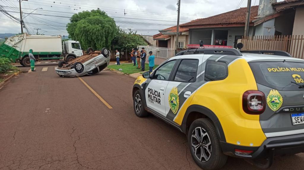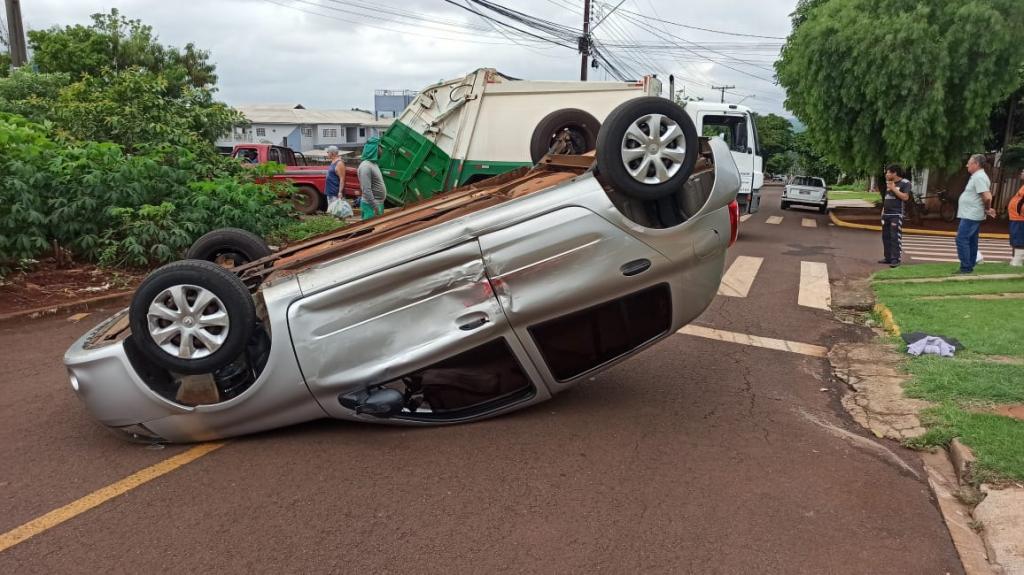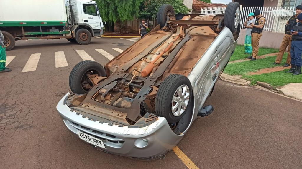 O motorista do caminhão avançou a preferencial e atingiu lateralmente o Clio que na sequência capotou ficando com as rodas para cima, o condutor do Renault foi socorrido por uma equipe do Corpo de Bombeiros com ferimentos considerados leves e encaminhado a UPA.