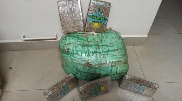 No início da noite os militares localizaram em meio a uma plantação de soja, aproximadamente 16kg de maconha, divididos em 5 tabletes prensados e um fardo maior.
