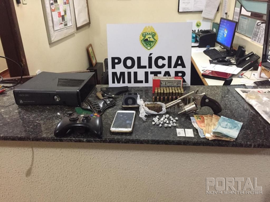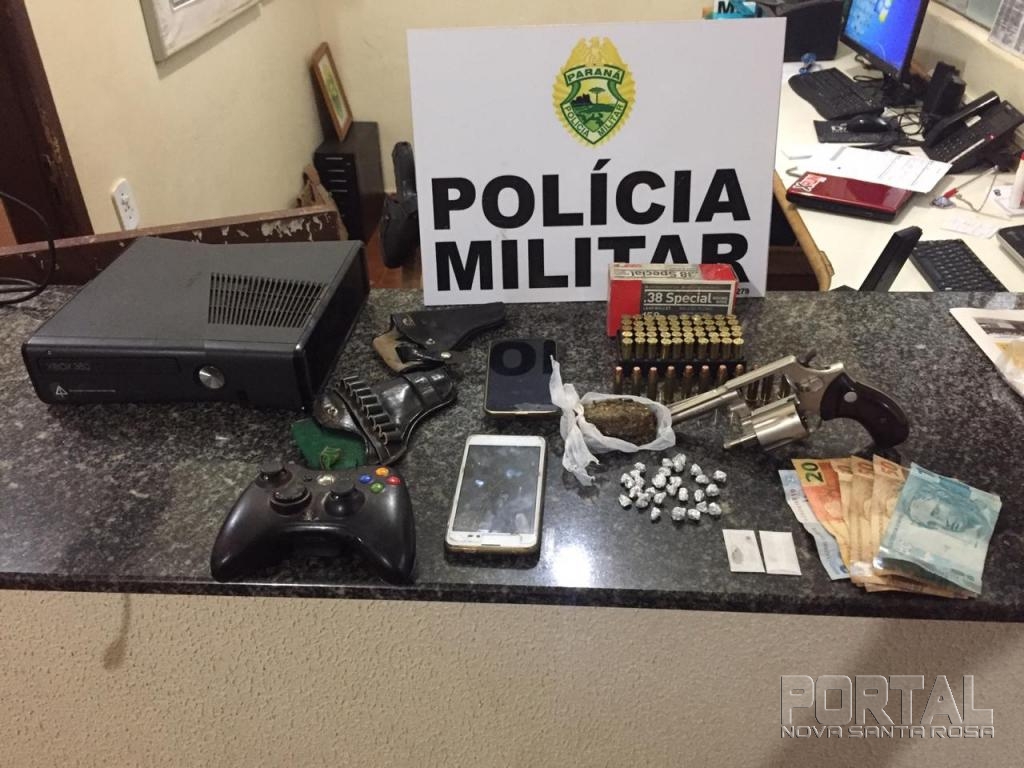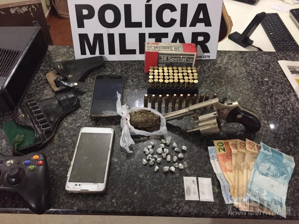 Foram apreendidos também duas giletes usadas para processar entorpecente, um celular branco de marca Multilaser, um celular preto sem marca, um videogame X Box preto com controle e fonte de energia, dois coldres velados para acomodar arma e munições.