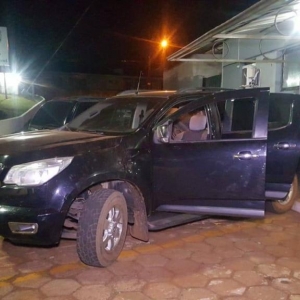 Três veículos foram avistados pela equipe policial, porém dois automóveis conseguiram empreender fuga, enquanto que o condutor da caminhonete, ao perceber que não conseguiria fugir com o veículo, saltou da caminhonete em movimento e se evadiu pela área de plantação.
