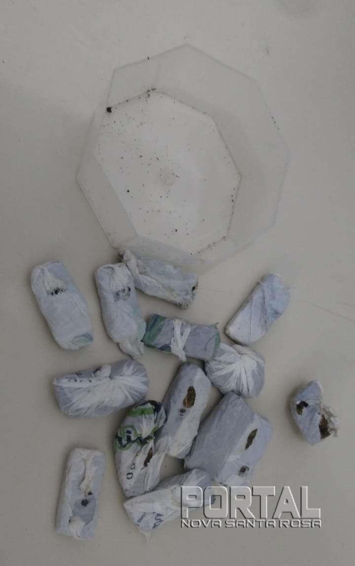 O soldado acionou a equipe policial, que deslocou até o local e abordou o indivíduo, sendo um adolescente de 15 anos, sendo que em revista pessoal nada de ilícito foi localizado. ao deslocar novamente no local em que foi visto pela primeira vez, foi constatado de que o que o que havia escondido, se tratava de um pote com 14 porções da substancia análoga a maconha, que após pesados foi totalizado a quantia de 69 gramas que a equipe perguntou a procedência da droga, que o adolescente disse que pegou a mesma na praça da cultura pela quantia de R$50,00 e que revenderia cada porção pela quantia de R$10,00.