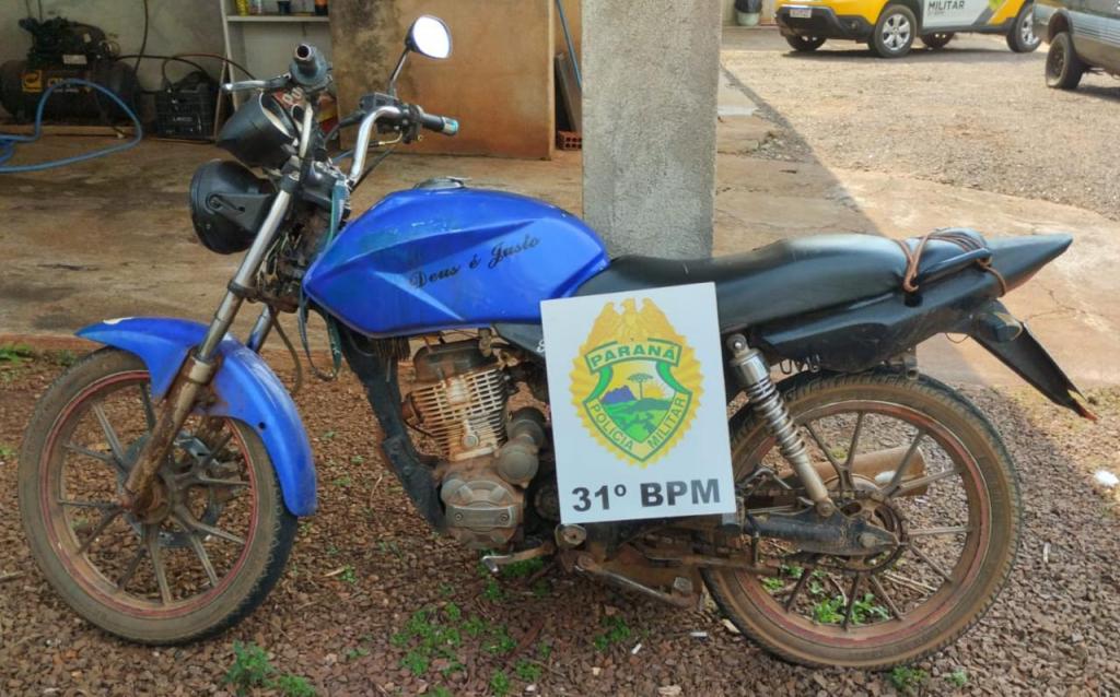 No final da manhã de hoje, sexta-feira (26), uma equipe da PM de Terra Roxa em patrulhamento pela estrada rural São Cristóvão visualizou homem transitando com motocicleta, com itens em desacordo com o Código de Trânsito Brasileiro.