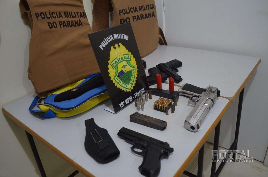No local onde ele relatou estar a suposta arma, foi encontrado 25 munições intactas de .9mm, 4 munições intactas de .32, 9 de .357 deflagradas, uma de .38 deflagrada e dois de .12 deflagradas. Também localizado um carregador .380, um carregador de pistola .9mm e 4 simulacros, os quais o mesmo relatou ser o proprietário. Logo após a fuga do indivíduo, foi pedido apoio da viatura do trânsito e da CPU deslocaram imediatamente, onde foi oferecido o teste de etilômetro ao condutor, o qual aferiu 0,19mg/l, valor considerado 0,15mg/l, não constando crime de trânsito.