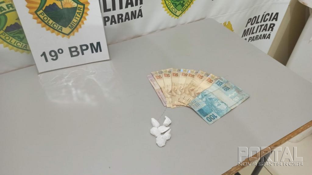 Em uma rua paralela a Avenida Maripá, um dos ocupantes da motocicleta tentou jogar algo que carregava que mais tarde foi encontrado e confirmado seis porções de cocaína, com o rapaz também foi encontrado dinheiro em espécie.