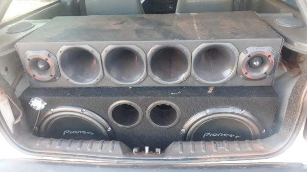 Por volta das 14h20 desta quinta-feira, equipe PM patrulhava a Rua Jose Antônio, equina com a Rua Azauri Guedes Pereira, quando visualizou um veiculo Gol de cor branca com volume extremamente alto, som audível lado externo do veiculo á aproximadamente uma quadra.
