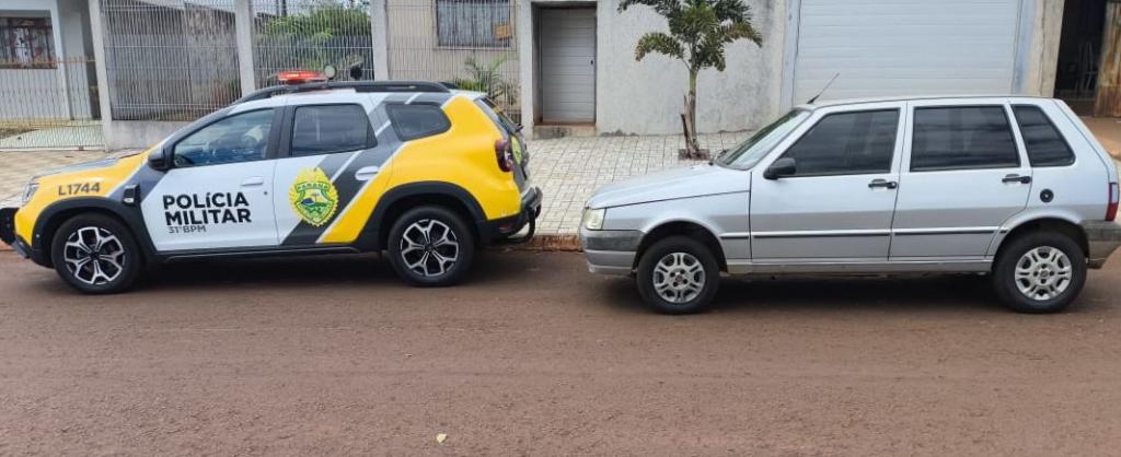 Os militares consultaram o carro através da placa e foi possível constatar que o Uno havia sido furtado ontem em Assis Chateaubriand.