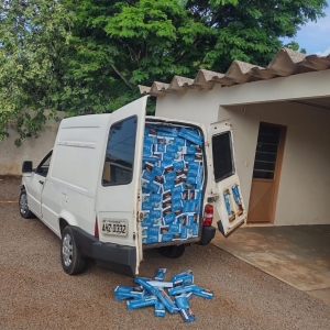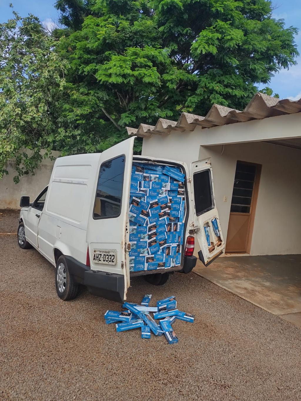 O Fiat estava abarrotado de cigarros de origem estrangeira, o condutor foi detido em flagrante, no veículo havia com cerca de 48 caixas de cigarro da marca Classic, segundo informações do condutor.
