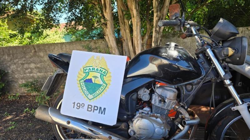 Uma motocicleta com registro de furto foi recuperada pela Polícia Militar na área rural do município de Mercedes.