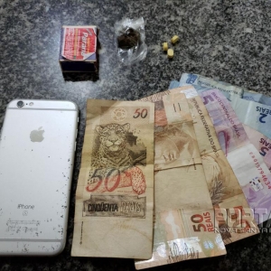 Por volta das 23h40 desta terça-feira (17), em patrulhamento pelo Bairro Jardim Dallas, foi avistado um veículo GM/Astra de cor preta, placas com BAB-1013, mais adiante o carro foi abordado e em buscas no interior do veículo foram encontrados em uma mochila, três comprimidos de ecstasy e um invólucro de maconha, totalizando a quantia de aproximadamente três gramas, o celular do rapaz foi apreendido para investigações.