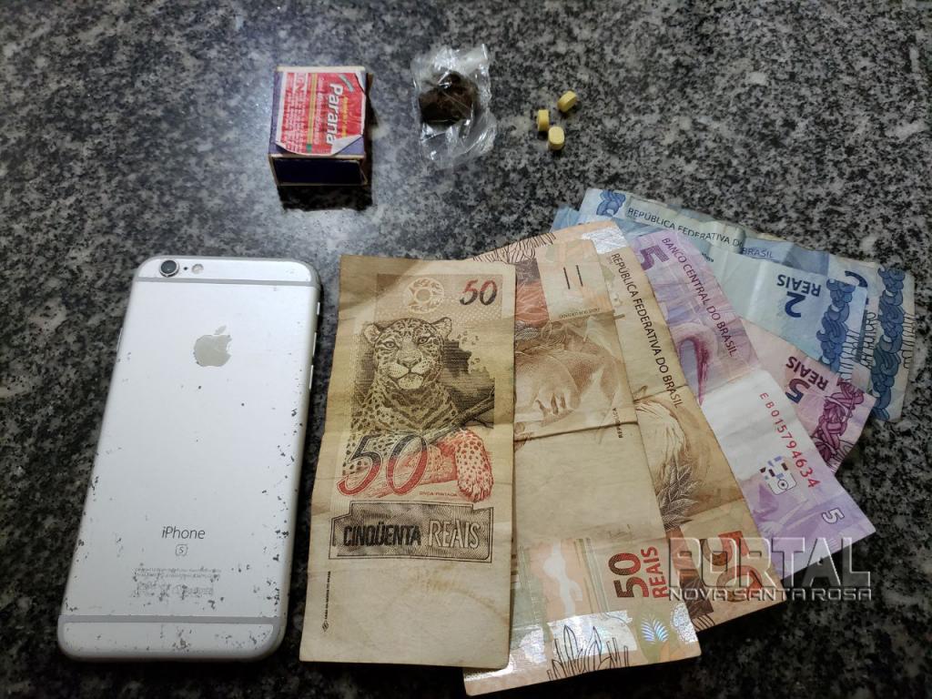 Em revista pessoal, no bolso e no interior do veículo foram localizados uma pequena quantia em dinheiro e ainda o veículo estava com débitos atrasados.
